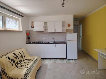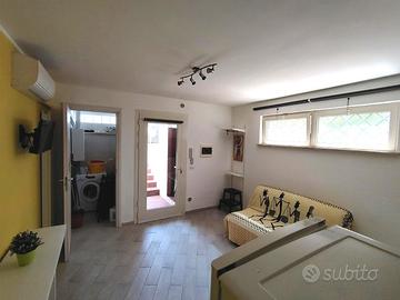 Grazioso appartamento con entrata indipendente completamente ristrutturato a 200mt dal mare senza attraversamenti. Situato nel Residence Baia del Circeo (litoranea a 4km da San felice Circeo e 8km da Terracina) é ideale per famiglie e per chi vuole trascorrere una vacanza in tranquillità. È composto da soggiorno con cucina a vista, camera matrimoniale, cameretta con letto trasformabile in matrimoniale, grande bagno con doccia, aria condizionata, giardino attrezzato con doccia esterna e barbecue, parcheggio libero all'interno del residence e supermercato a 200mt. Posti letto 4 + 2. Disponibilità rimaste dal 1 al 15 giugno, dal 1 al 15 agosto e settembre. Pulizia finale (solo se ci sono animali si applica supplemento di 30,00 euro) e consumi compresi nel prezzo. A parte servizio spiaggia con un ombrellone e 2 lettini e la tassa di soggiorno imposta dal comune di Terracina. Biancheria a parte su richiesta.