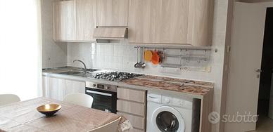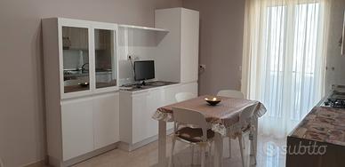 Appartamento composto da soggiorno con angolo cottura e divano letto 2 posti, 1 ampia camera da letto matrimoniale, bagno con box doccia e lavatrice, balcone attrezzato di tavoli e sedie.