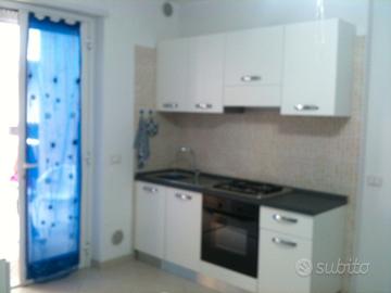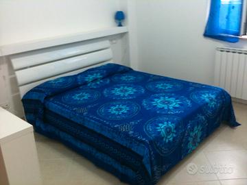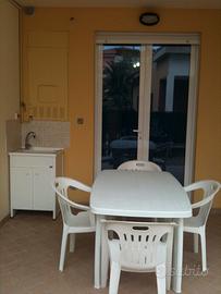 Appartamento bilocale antisismico a 50 m dal mare al piano terra, anno di costruzione 2012, 4 posti letto, soggiorno con angolo cottura e divano letto matrimoniale, camera da letto matrimoniale con letto aggiuntivo o culla, bagno con cabina doccia e lavatrice. Appartamento molto fresco esposto a nord. E' completo di tutto l'occorrente: stoviglie, pentole, stendibiancheria, coprimaterassi e copricuscini, televisione, ferro e tavola da stiro, PALE al soffitto. Dotato di ESTINTORE e RILEVATORE GAS. Veranda esterna attrezzata con tavolino, sedie, sdraio, lavatoio e giardinetto privato con 2 posti auto con accesso indipendente. Ottima posizione nel centro del paese, in VIA COLOMBO accanto all'HOTEL PALACE, di fronte lungomare con scelta tra spiaggia attrezzata con stabilimenti (Lido Sirena e Magnolia) o spiaggia libera, con zona pedonale e pista ciclabile, nelle immediate vicinanze noleggio biciclette e risciò, negozi, supermercati, gelaterie, pizzerie, parco giochi bambini.