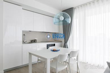 Si propone in affitto un appartamento situato al sesto piano di una palazzina di nuovissima costruzione, ubicata nei pressi di Piazza Mazzini. L'immobile si compone di una zona giorno molto luminosa con accesso ad un ampio terrazzo abitabile da cui poter godere della vista sul mare e di un moderno angolo cottura dotato di forno e lavastoviglie. Dispone di due camere da letto, una con letto matrimoniale e con accesso ad un'altra terrazza posteriore, l'altra invece con letto singolo e letto estraibile, consentono di ospitare fino a quattro persone. È presente un secondo bagno oltre a quello principale, entrambi finestrati e dotati di box doccia. Inoltre, sono disponibili il clima e la lavatrice. Il posto auto è scoperto e assegnato ed il posto spiaggia è incluso nel prezzo. ANIMALI NON AMMESSI CIR: 027019-LOC-08588 CIN: IT027019B4Y7GY55SQ CLASSE A4 kWh 14,23