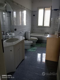 Composta da cucina attrezzata,salone abitabile , 2 camere da letto con matrimoniale e lettino, possibilità d'avere anche la culla da campeggio. Inoltre, biancheria,bagno con vasca, asciugamani asciugacapelli,terrazzo con tavolo sedie lavatrice e stendi biancheria.