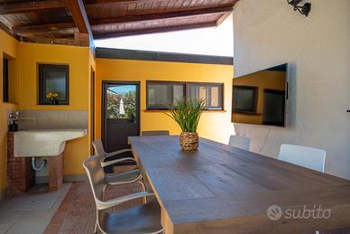 L'esterno offre un giardino privato attrezzato con piscina fuori terra, sdraio per il sole, barbecue e un'area dedicata ai pranzi all'aperto. La villetta garantisce il massimo comfort in ogni stagione grazie alla climatizzazione in tutti gli ambienti e alla connessione internet Wi-Fi.