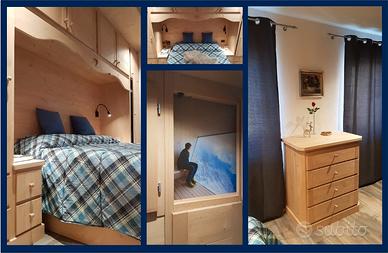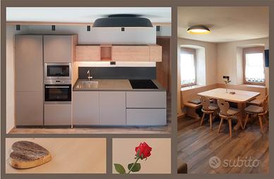 L'alloggio, distribuito su un unico livello, è posto al piano primo e offre un ampio locale cucina-soggiorno attrezzato con tutti gli accessori che vi possono servire per dilettarvi ai fornelli. Un camera molto grande presenta un letto matrimoniale incastonato in un armadio a ponte con soffitto ribassato mentre, nello spazio di fronte, ho ottenuto che il mio fratello falegname realizzasse una struttura in legno che riproduca l'esperienza di dormire in un bivacco: un'accogliente alcova con la volta a botte, interamente rivestita in legno, dove potete far dormire con voi i vostri figli o amici. Nel bagno con doccia, ho voluto inserire un lavabo scolpito nella roccia che vi ricordi la materia della quale sono nate le montagne che potete ammirare dalle finestre. Se amate stare all'aperto potete farlo nei prati che circondano la casa o specchiarvi nelle acque del lago di S.Caterina raggiungibile a piedi in un paio di minuti.