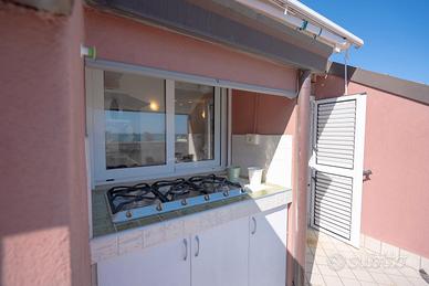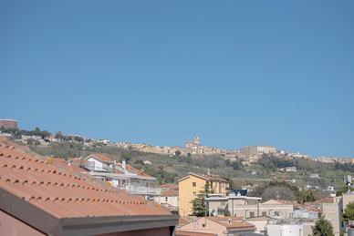 Un ampio terrazzo panoramico con piano cottura esterno e tendone coprisole, in uno spettacolo unico che scopre la linea dell'orizzonte marino e la parte antica di Vasto alta.