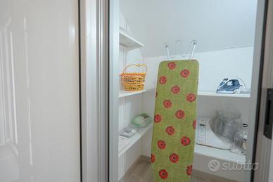 Due bagni con doccia e servizi, asciugacapelli, lavatrice e kit teli da bagno personali. Lavatrice, autoclave, tre TV schermo piatto, asse e ferro da stiro. Stendino, scope, scopettoni, secchi, asse e ferro da stiro ed autoclave.