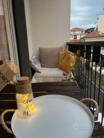 - accogliente balcone ombreggiato con piccolo divano per pausa caffè