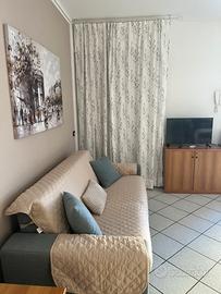 Camera matrimoniale e soggiorno con cucina a vista. Divano letto in soggiorno da 140 cm