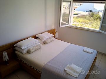 I prezzi partono da 250/ settimana e si riferisce all'ultima di settembre Appartamenti in residence vista mare in Località Lido Marini (LE) dotati di tutti i confort: aria condizionata, zanzariere, tv, lavatrice, cucina completa di stoviglie, forno, doccia interna ed esterna comune per sciacquarsi quando si torna dal mare. In base alle vostre esigenze sarà possibile scegliere tra diverse tipologie, quindi contattatemi per una risposta dettagliata e che rispecchia le disponibilità del periodo richiesto. tipo camera matrimoniale, cameretta, bagno, cucina-soggiorno con un comodissimo divano-letto singolo/matrimoniale spazio esterno per pranzare anche all'aperto in piena tranquillità e relax. sito in Via Crispi in Lido Marini di Ugento LE e dista poco meno di 150 metri dai negozietti del centro (market, fruttivendolo, pescheria, macelleria, panetteria, ecc.) e poco meno di 100 metri dal mar Jonio e precisamente dalla rinomata baia di Lido Marini, caratterizzata da sabbia fine e fondale basso, ideale sia per i bambini che per gli adulti e per praticare pesca da terra e subacquea, mentre dista 4 km dalle rinomate spiagge delle Maldive del Salento, 10 km da S. M di Leuca e 25 km da Gallipoli. Gli appartamenti sono per max 5 posti e Sono grandi e luminosi! Per visionare le foto e per aver maggiori informazioni visita il nostro sito www.sabbiachiara.it CIS: LE07509091000012602