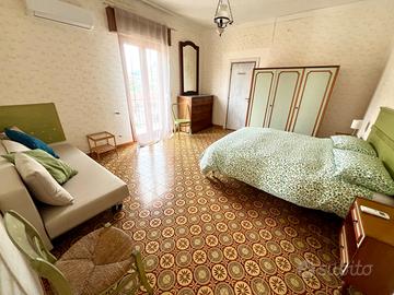 Ad Agerola, al centro dei monti Lattari, contornati da un panorama mozzafiato sulla penisola sorrentina, nella frazione di San Lazzaro (a 764 m. s.l.m.), in pieno centro abitato è situato l'appartamento. Il visitatore accolto all'ombra degli alberi secolari del Parco che ospita la famosa Colonia Montana, resta stupito dalla magnifica vista di tutta la costa che è possibile ammirare da Punta Miramare. Dalla comoda scala comune del fabbricato sito in via A. Coppola si accede al terzo piano ove è situato l'appartamento di circa 110 mq. Un ampio terrazzo esclusivo da accesso all'appartamento ed offre la possibilità agli ospiti di avere un pranzo all'aperto e godere della vista del Parco con la Colonia Montana. L'appartamento accessibile da due ingressi indipendenti è diviso in due settori, uno che si affaccia sulla strada tramite un lungo terrazzino e l'altro che prospetta sul cortile interno. La zona giorno è composta da un ampio soggiorno-pranzo con angolo TV direttamente collegato alla cucina attrezzata con tutto quanto occorre per la preparazione delle pietanze e dotata di uno spazio colazione.