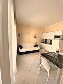 - un luminoso soggiorno con angolo cottura fornito di lavastoviglie, piastra ad induzione, forno microonde, stoviglie, tovagliette e utensili da cucina, con un ampio divano letto matrimoniale e un piccolo sgabuzzino con una lavatrice