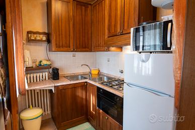 Cucinino con tutti i comfort essenziali, come 4 fornelli a gas gpl, frigorifero, forno, forno a microonde, macchina da caffè con cialde.