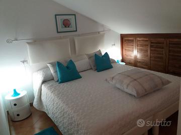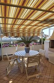 Deliziosa mansarda con aria condizionata e grande terrazzo abitabile con vista mare, direttamente sulla spiaggia all'interno di un residence con accesso privato. La posizione eccellente consente una vacanza al mare in tutta libertà e relax, ristoranti, supermarket e servizi di ogni genere a pochissima distanza. L'appartamento al secondo piano è indipendente, comprende soggiorno-cucina attrezzata, camera matrimoniale , servizi e può ospitare fino a 3 persone usufruendo di un pouf lettino. La casa è attrezzata per cucinare e con tutto il necessario per un soggiorno confortevole ed offre un grande terrazzo dove poter pranzare all'aperto o per prendere il sole. A disposizione dei nostri ospiti spiaggia attrezzata con ombrellone e sdraio direttamente sotto casa.