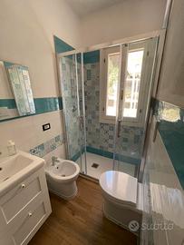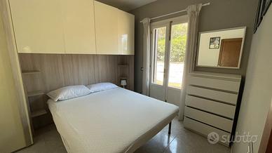 Appartamenti composti ognuno da quattro posti letto: una camera matrimoniale, piccolo vano con letto a castello, bagno con doccia, cucina abitabile, veranda con tavolo per cenare/pranzare all' aperto, ampio giardino, lettini, spiaggine.