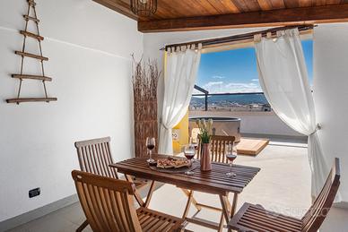 Bellissimo e rinnovato ATTICO nel cuore di Olbia, con un'incredibile TERRAZZA panoramica attrezzata con Jacuzzi, lettini prendisole e un ampio tavolo esterno, perfetta per vivere momenti di infinito relax all'aria aperta con amici o famiglia!