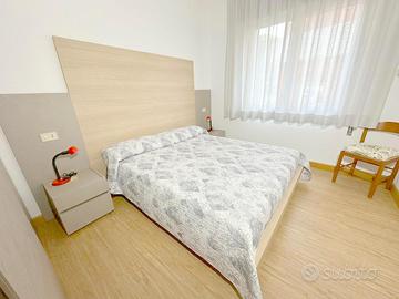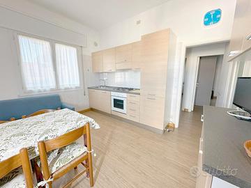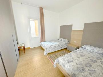 In piccola palazzina a 200 m dal mare nei pressi della centralissima piazza Mazzini appartamento ristrutturato e ben arredato al primo piano, composto da soggiorno/pranzo con angolo cottura e divano, n.1 camera da letto matrimoniale, n.1 camera con due letti singoli, bagno con doccia. L'appartamento è dotato di TV, lavatrice ed aria condizionata. N.1 Posto auto riservato (no van). n.1 posto spiaggia incluso presso il Consorzio Cbc. Totale posti letto: 4+1 (brandina). Non prenotabile a gruppi di ragazzi.