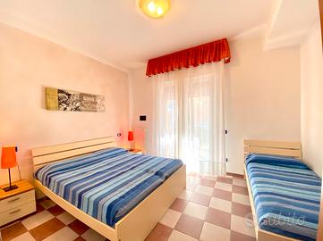 L'appartamento si trova in un condominio, vicinissimo al mare (150 metri), si arriva in spiaggia tramite l'accesso al mare davanti al condominio.