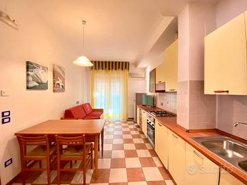 Cucina accessoriata, bagno con box doccia, TV, condizionatore, lavatrice, forno microonde.