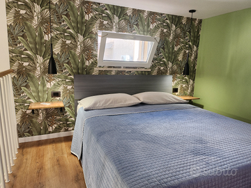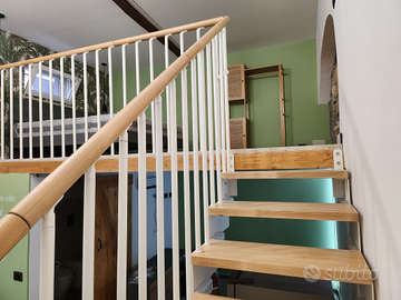 Camera da letto matrimoniale situata su soppalco raggiungibile da una scala molto comoda.