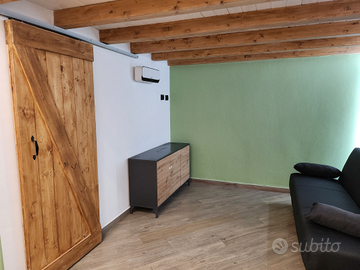 Composto da cucina soggiorno completa di tutto, divano letto da 1 piazza e mezzo in zona soggiorno,bagno moderno e spazioso con doccia molto grande!