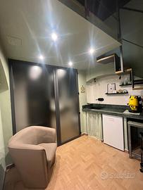 La Bottega dei Sogni è un piccolo monolocale che accoglie con un'atmosfera intima e curata: una camera confortevole, un angolo con tutto il necessario per una pausa (frigo, microonde, macchina del caffè) e un bagno con doccia e cromoterapia per momenti di vero benessere.
