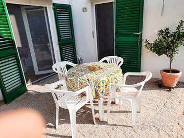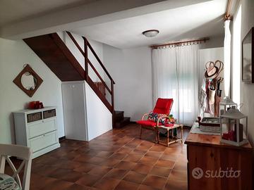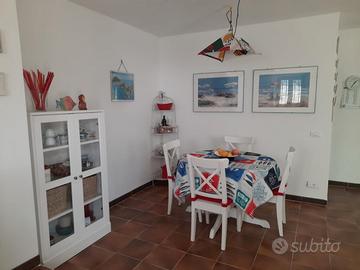 Graziosa casetta con ingresso indipendente rialzato disposta su due livelli. Al piano terra si compone da soggiorno con cucinotto e zona relax, tavolo da pranzo interno, oltre spazio esterno attrezzato con altro tavolo sia all'aperto che sotto gazebo. Si accede tramite una scala interna alla zona notte, dove troverete le due camere da letto, una matrimoniale ed una con due letti singoli. Bagno con box doccia.