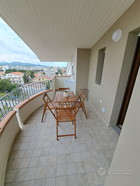 Affitto estivo trilocale ad Alba Adriatica, a pochi passi dal mare (5posti letto di cui 2 letti matrimoniali e 1 divano letto). Appartamento sito al sesto e ultimo piano di un condominio nuovo e recentemente ristrutturato, con ascensore. Composto da soggiorno con angolo cottura, due camere matrimoniali (di cui una mansardata con altezza massima 2.20 mt), un bagno finestrato, un comodo balcone. Posto auto esterno. Tariffe personalizzate in base al periodo. Incluso nel prezzo: utenze, biancheria da bagno, coprimaterasso e cuscini, tovaglia..moka, lavatrice, tavola e ferro da stiro, tv in tutte le stanze, posto auto e cantina. Non incluso nel prezzo: tassa di soggiorno. È prevista una cauzione. Check in: h. 14.00 Check out: h. 10.00