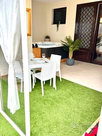 Piscina idro massaggio riscaldata Jacuzzi all'interno di un giardino d'inverno ad uso esclusivo degli ospiti.