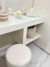 Bagno con cabina doccia e bidet, postazione trucco, asciugacapelli.