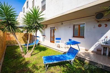Il giardino privato con accesso diretto dal soggiorno è il luogo giusto per rilassarvi e godevi a pieno la vostra vacanza. è dotato di un ombrellone, 2 lettini prendi sole e 2 comode poltrone.