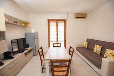 Il soggiorno dotato di aria condizionata, rappresenta il cuore dell'appartamento è una vera chicca, molto luminoso ed elegante. Vi si trova un tavolo da pranzo, sedie, divano letto .