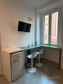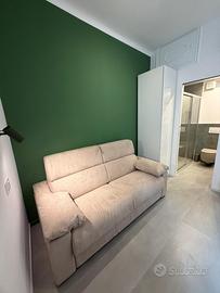 Affitto breve di appartamento composto di cucino, piano snack e smart working, divano letto piazza e mezza, bagno. Trovarsi in via Andrea Ponti angolo via Lodovico il Moro. Servita da mezzi di superficie che portano direttamente in centro o alle metro dì porta Genova, Famagosta e Romolo.