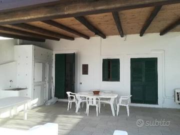 La casa, di circa 50 m^2, si chiama La Conchiglia, si trova a Stromboli, a pochi metri dalla spiaggia. E' composta da una camera da letto con un letto matrimoniale, un divano letto, un armadio ed un tavolo con sedie. La cucina, separata dalla camera da letto, dispone di piano cottura, forno, frigorifero, armadi ed anche un divano letto. Il bagno è completo di doccia con acqua calda. Vi è anche la doccia esterna in terrazza con acqua soltanto fredda. La terrazza, di circa 70 m^2, quasi totalmente coperta e circondata da muri, dispone di due tavoli con sedie e due sdraio con ombrellone, nella parte non coperta da tettoia.