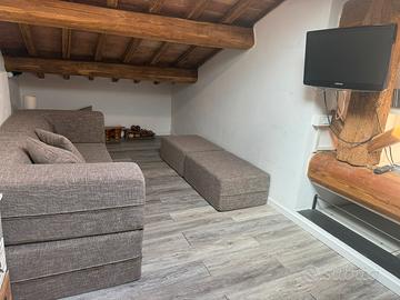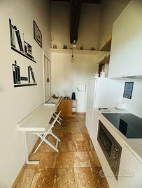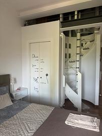 Camera matrimoniale con bagno e soggiorno in soppalco (soffitto basso) con possibilità di secondo letto matrimoniale. Angolo cottura con induzione microonde e frigo con frizer. Piccolo loggiato esterno con tavolino e due sedie . Ideale per brevi soggiorni per due persone