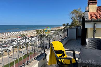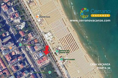 A meno di 50 metri dalla spiaggia di sabbia fine, direttamente sul Lungomare centrale e a due passi dalla pineta attrezzata, con area relax e giochi per bambini.