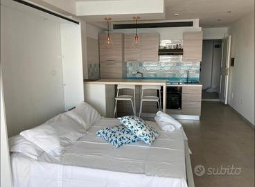 Il monolocale adiacente, quasi speculare a questo, può essere affittato in contemporanea, offrendo una soluzione ideale per gruppi o famiglie che desiderano trascorrere del tempo insieme, ma mantenendo la propria indipendenza. I due monolocali sono collegati da un terrazzo comunicante, che permette di godere di uno spazio esterno condiviso, perfetto per rilassarsi, pranzare all'aperto o socializzare. Questa configurazione consente di unire la privacy e il comfort di due monolocali separati con la comodità di un'area esterna comune, creando un ambiente conviviale senza rinunciare alla tranquillità.