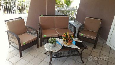 - Piano terra= camera da letto con letto matrimoniale + divano letto matrimoniale + letto puffo (aria condizionata), 1 bagno con ampia doccia (nuova), ampia cucina e veranda esterna dove si può mangiare.
