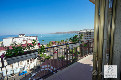 Splendida abitazione panoramica sul mare di 120 mq situata a pochi metri dal lungomare della città di Crotone perfetta per chi si vuole spostare a piedi. L'appartamento dispone di due balconi con vista sulla costa e sul lungomare, una cucina con utensili , frigo/congelatore, condizionatore,piano cottura, forno, due bagni, una camera da letto matrimoniale e una cameretta con due letti singoli entrambi dotati di aria condizionata,soggiorno con divano per guardare in tranquillità la TV, sala da pranzo.