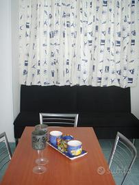 Appartamentino arredato, corredato, climatizzato, bagno completo con box doccia, ubicato in pieno centro e composto da ingressino, soggiorno con angolo cottura, camera da letto matrimoniale, e terrazzino interno. La casa, di recente costruzione dispone di citofono con apriportone, tv, frigorifero, ventilatore a pale sul soffitto oltre al condizionatore pompa di calore, armadio a muro quattro ante, pannelli solari, antenna parabolica con attacco per sky. Oltre alla camera da letto matrimoniale, nel soggiorno vi è un divano letto matrimoniale francese. L'appartamentino dista pochi passi da alcune tra le più belle spiagge di sabbia bianche dell'isola (guitcia, cala croce, cala Madonna, portu' ntoni, cala maluk, schiatu persu, cala francese). Inoltre, a circa 100 metri dalla casa si raggiunge il capolinea dei bus navetta che servono tutti i luoghi balneabili di Lampedusa incluso la famosa spiaggia dei conigli.