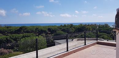 Viale Umbria 3, ampio monolocale attico, divano letto matrimoniale, divano letto una piazza e mezza, terrazzo esclusivo per relax e pasti, altro grande terrazzo in comproprietà con l'alloggio attiguo, molto soleggiato, ottimo anche per stendere biancheria asciugamani. Bagno con doccia, cucina attrezzata con forno, frigo, congelatore, barbecue in muratura nel terrazzo esclusivo a carbonella! Ideale per coppia con uno o due bambini. Sesto piano, ascensore al quinto, l'altezza lo rende molto panoramico, piacevolmente ventilato, zanzariere su ogni porta/finestra