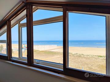 Disponibile per affitto estivo appartamento mansardato situato in una posizione privilegiata, direttamente fronte mare. Ideale per vacanze rilassanti e rigeneranti L'appartamento comprende: l'ingresso, 1 camera grande con letto matrimoniale, 2 letti singoli a castello, zona giorno con divano smart TV e angolo cottura, bagno con doccia. Capienza massima 4 persone. Sul retro cortile e giardino privato con la possibilità' di pranzo all'aperto. Spiaggia libera gratuita davanti casa o potete beneficiare dei servizi Lido a 20m. Nella zona sono presenti diversi locali, bar, ristoranti, gelaterie, banca, poste. Centro città a 1,3 km. DISPONIBILITA' 13-19 Luglio , dal 23 AGOSTO IN POI. CIN IT042045C2DIK2PR64