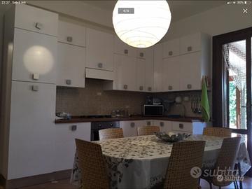 All'esterno una grande veranda con aiuola è dotata di ampia tettoia in legno, cucina in muratura, ampio tavolo con sedie e lettini da sole, doccia esterna con acqua calda e cisterna idrica autonoma.