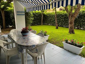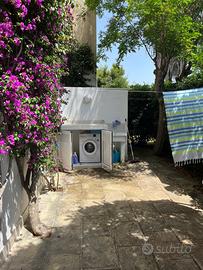 Prestigioso bilocale piano terra , ristrutturato con giardino angolare -2 camere da letto con finestre -2 bagni con finestre -uno intero, uno esterno - soggiorno con cucina. Munito di pale, aria condizionata e zanzariere sito in via Arianna 248 a 200 metri dalla Piscina . SETTIMANE LIBERE: