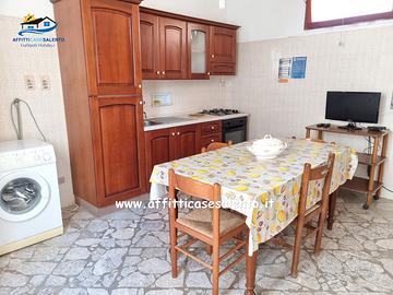 La RESIDENZA PESCE AZZURRO è un quadrilocale con ingresso in androne, completamente arredato e composto da un ampio salone con tavolo e sedie, comodo divano letto matrimoniale con rete elettrosaldata e balcone da cui si intravede la vista del mare, due camere da letto indipendenti e luminose, due bagni di cui uno con doccia, sala pranzo abitabile con cucina con angolo cottura attrezzato con piatti, bicchieri, pentole e posate, frigorifero con congelatore.