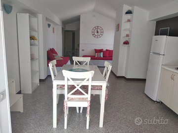 In posizione collinare, quindi molto panoramico, fresco, sempre ventilato e in un contesto tranquillo e silenzioso (non isolato, altri inquilini). Disponibile per un numero MASSIMO di ospiti pari a 3, composto da una camera da letto matrimoniale, cucina-soggiorno con due letti singoli, bagno con doccia, ampio terrazzo coperto molto panoramico con tavolo e sedie, secondo balcone e grande spazio esterno al piano terra comune. Disponibile anche ampio monolocale nuovo con amch'esso spazio esterno. Ingressi indipendenti e posto auto adiacente l'abitazione. Gli animali sono i benvenuti purchè discreti (costo accessorio 20 euro per le pulizie con animali domestici). L'appartamento è dotato di TV , phon, ,stoviglie, zanzariere ,vano lavatrice in comune con un altro appartamento, barbeque.
