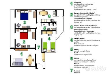 L'appartamento è spazioso, perfetto per gruppi o famiglie (fino a 8 persone), e offre: