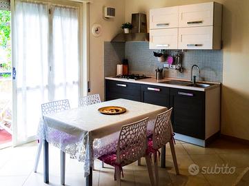 Solo per vacanze affittiamo a Vittoria Apuana ampio ed elegante monolocale totalmente ristrutturato con rifiniture di pregio, 2 posti letto + 1 in letto richiudibile, piano primo. Dispone di climatizzatore, TV, lavatrice, lavastoviglie, box doccia, phon, terrazza con spazio pranzo, posto bici condominiale a 300m dal mare.