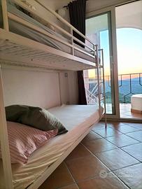 Piano superiore: camera matrimoniale con grande armadio e terrazzino, cameretta con letti a castello e veranda, bagno completo con doccia.