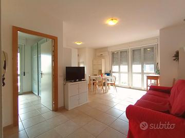 Composto da una camera da letto matrimoniale con armadio, sala/cucina "open-space" dove é posizionato un divano letto matrimoniale, bagno con doccia e lavatrice, balcone abitabile, posto auto.