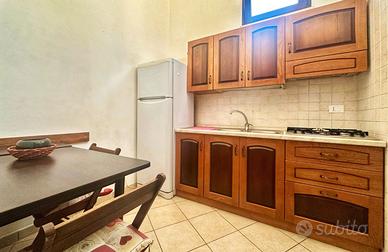 Ingresso soggiorno, angolo cottura, divano pronto letto (x 2 persone), bagno di servizio (wc e lavabo, con lavatrice), soppalco con letto matrimoniale (+ eventuale letto singolo), con accesso al secondo bagno completo con doccia. Climatizzatore, TV color.