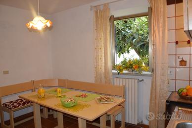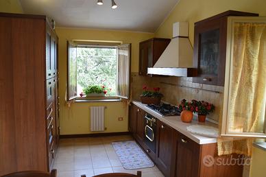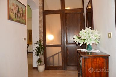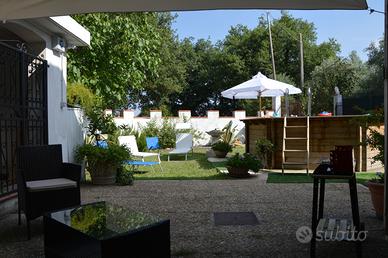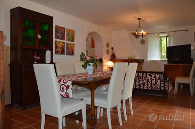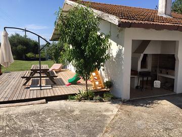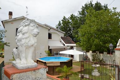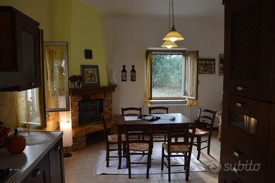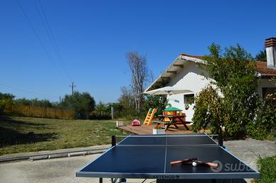 Disponibile per il mese di agosto! Il Casale con piscina "Le Querce" a Cellino Attanasio è una casa singola nella campagna abruzzese a circa 20 km dal mare, con piscina in legno fuori terra, nella contrada di Comignano a pochi km dalla storica cittadina di Atri, che ha dato il suo nome al mare Adriatico. Il casale è composto da 2 appartamenti che comunicano con una scala interna. Sono ammessi animali di piccola taglia. Caratteristiche Casale Le Querce, villa in campagna a Cellino Attanasio L'appartamento al piano terra: dispone di ampia camera matrimoniale (con possibilità di aggiungere 1 o 2 letti singoli se richiesti) accede direttamente alla corte esterna possiede cucina e ampio salone con tavolo in legno per 8 persone, camino (con legna a disposizione), tv e piccola sala attrezzi, bagno con doccia dal salone si accede alla corte esterna una scala interna collega i due appartamenti e possono rimanere autonomi grazie ad un portoncino al primo piano che può essere chiuso L'appartamento al primo piano: è composto da 3 camere, tra cui 1 camera matrimoniale con balcone, dove è possibile aggiungere 1 culla se richiesta una seconda camera con letto alla francese (140×190) con la possibilità di aggiungere un letto singolo se richiesto una terza camera con 2 letti singoli con possibilità di unirli in uno matrimoniale e possibilità di aggiungere una culla se richiesta possiede una cucina ampia e luminosa con caminetto e tavolo in legno per 6 persone, tv, bagno con vasca è possibile l'accesso tramite la scalinata esterna possibilità di unire i due appartamenti grazie alla scalinata interna in legno e, all'occorrenza, anche di separarli chiudendo il portoncino dell'appartamento del primo piano